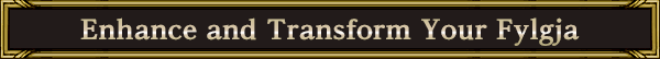 | Fylgja obtained through battle can gain levels through fighting, or by combining them with other Fylgja. Once they reach their maximum level, they can be transformed into new, even more powerful monsters by combining them with certain other Fylgja. Once transformed, their level will return to one, however their stats and abilities will receive a huge boost. Enhance and transform your Fylgja to create an undefeatable team of powerful servants! |